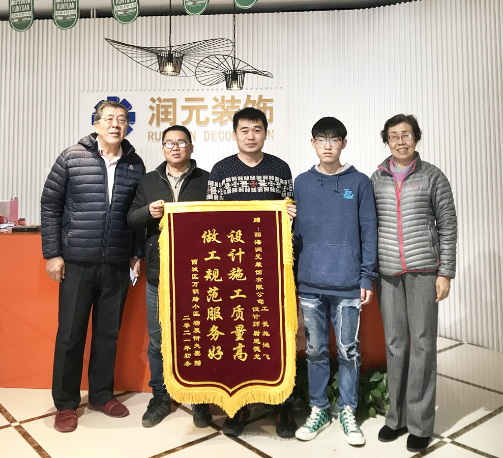 2021年11月26日上午,我們的業(yè)主,西城區(qū)萬明路小區(qū)楊辰衍夫婦,特地來到潤元將一面“設(shè)計施工質(zhì)量高,做工規(guī)范服務(wù)好”的錦旗送到設(shè)計師尉遲德龍和工長施鴻飛手上,以表達對此次裝修工作人員盡心盡責,施工效果佳的感謝,我們會不斷努力,服務(wù)好每一位業(yè)主。