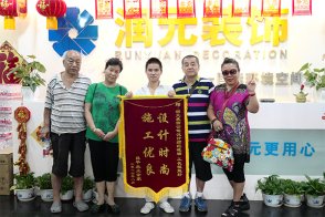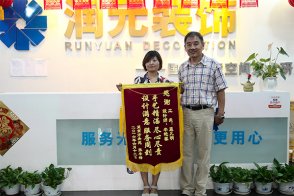 2016.8月9日上午,在這個(gè)浪漫的七夕節(jié)日潤(rùn)元裝飾昌平業(yè)主攜家人來(lái)到潤(rùn)元裝飾總公司,將一面繡有“設(shè)計(jì)時(shí)尚 施工優(yōu)良”的錦旗送到潤(rùn)元裝飾的領(lǐng)導(dǎo)手中,衷心感謝潤(rùn)元