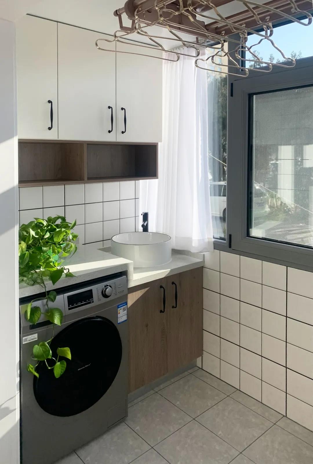 次臥是未來留給父母居住的,設(shè)計(jì)師調(diào)整了陽臺格局,將這里打造成了洗衣房,在旁邊加裝了洗手盆,洗完后的衣服直接在這里晾曬,非常方便。