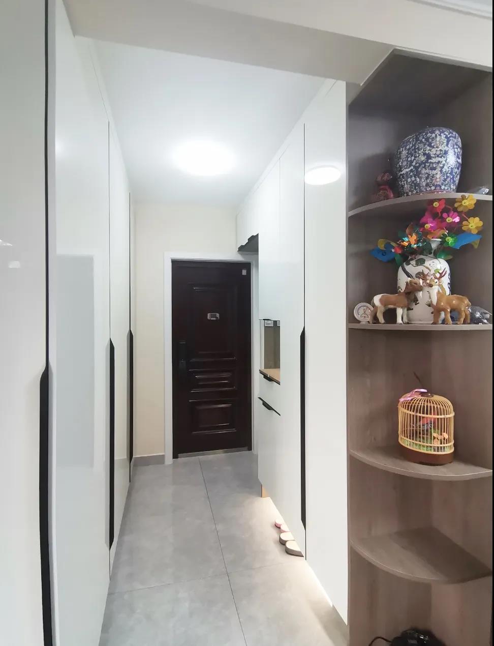 門廳面積不到4平米,一張桌子,一個(gè)簡(jiǎn)易鞋柜充當(dāng)臨時(shí)儲(chǔ)物,不僅空間上凌亂,整體利用率也很低。