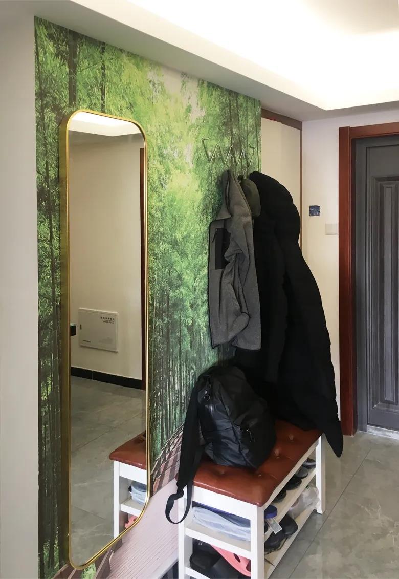 考慮到孫先生一家三口人居住,一個(gè)衛(wèi)生間就可以滿足日常生活,設(shè)計(jì)師李世昌將門廳和衛(wèi)生間的不承重隔斷墻拆除,整體重新布局。門廳5.7平米,衛(wèi)生間5.1平米,打通后整體空間將近11平米。進(jìn)門右手邊一組定制的雙門衣帽柜,滿足了臨時(shí)掛衣儲(chǔ)物需求,換鞋凳、穿衣鏡,完善了門廳空間。