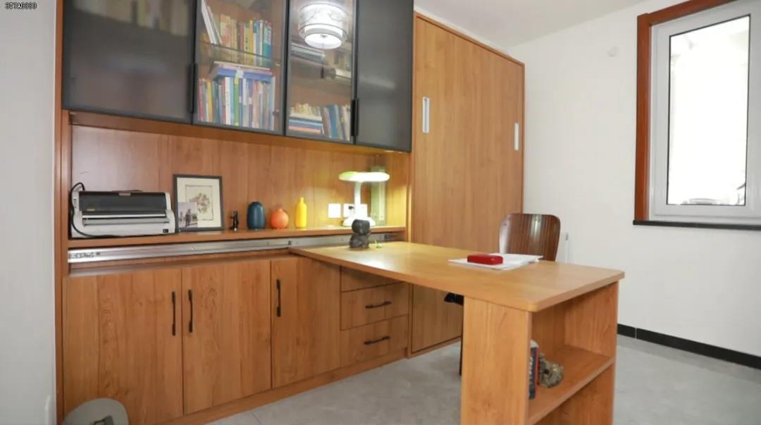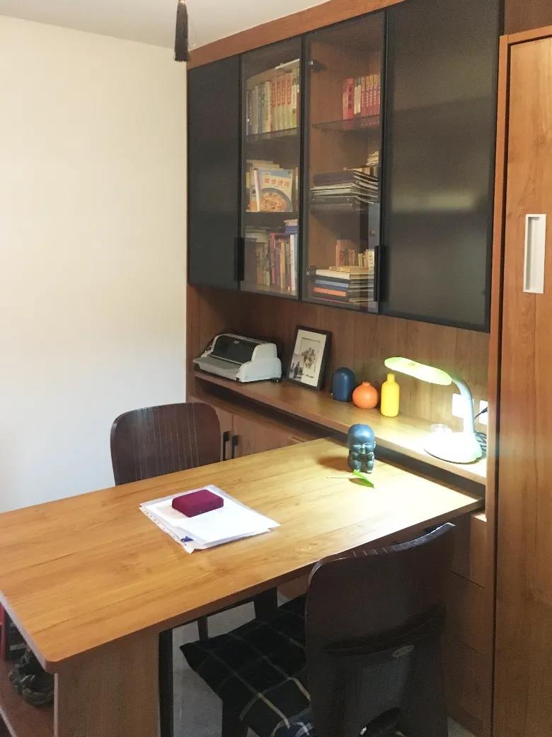 一組定制的書柜,書桌,加上壁床,滿足了平時(shí)學(xué)習(xí),工作,休息的需求。
