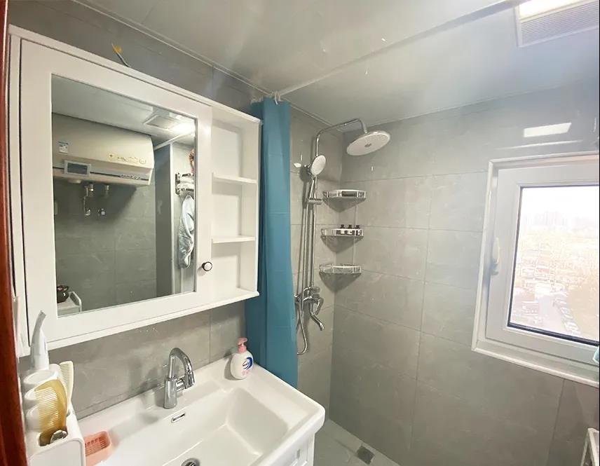 設(shè)計(jì)師改變了衛(wèi)生間門洞的朝向,外面放置洗衣機(jī),衛(wèi)生間面積雖然縮小了,但浴室柜,坐便器,淋浴等功能齊全。