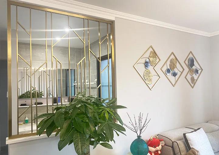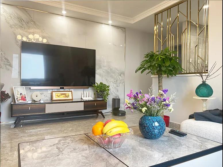 設計師將餐客廳重新規(guī)劃,21平米的餐客廳煥然一新,沙發(fā)、茶幾、電視薄柜依次擺放,原來擋在過道的餐桌重新安置,不占用過道區(qū)域,客廳最大化保留了活動空間,利用灰色系與金屬邊框相結合的手法,打造簡約的輕奢風格。