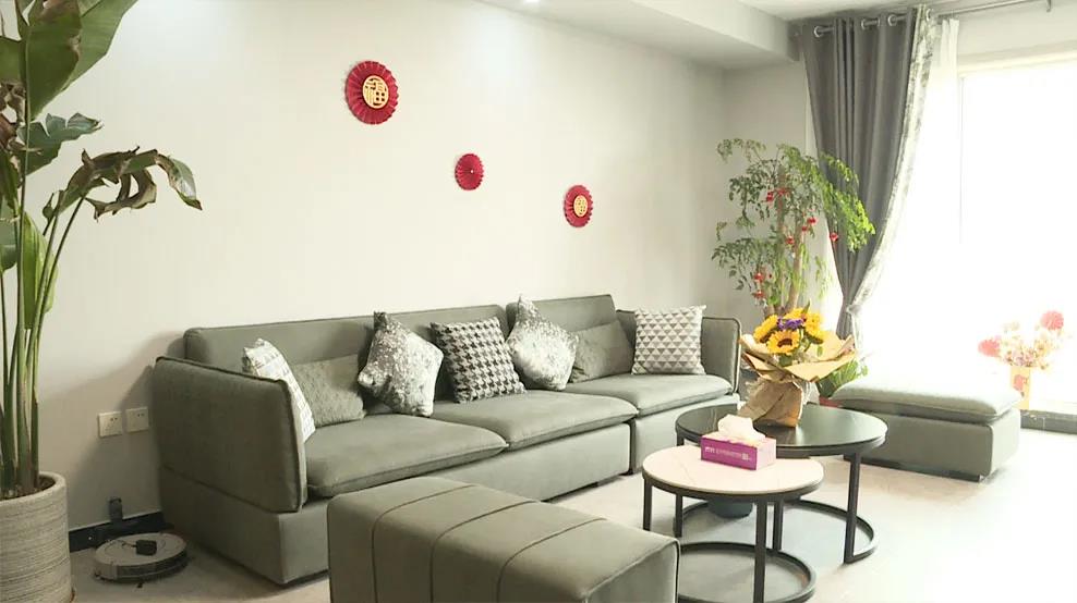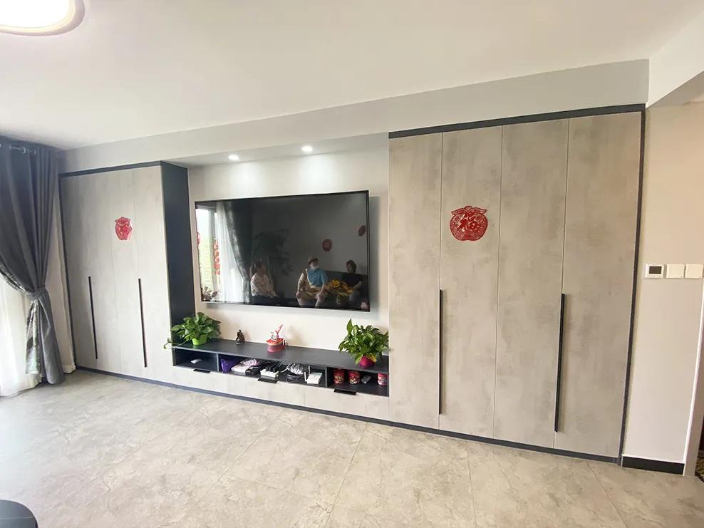設(shè)計(jì)師利用定制家具,將客廳里的儲(chǔ)物間隱藏其中,遮丑的同時(shí),讓空間更加整體,而且整組通頂?shù)膬?chǔ)物柜,滿足了楊女士想要的大容量?jī)?chǔ)物,沙發(fā)、茶幾依次擺放,整體空間色彩明麗,寬敞好用。