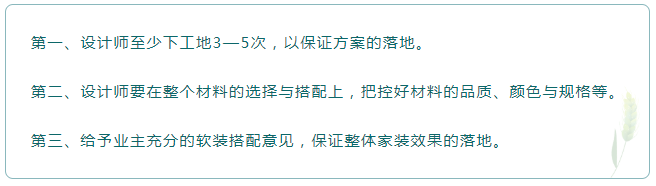 如果只有前期的設(shè)計(jì),沒(méi)有施工中的跟蹤服務(wù),也往往會(huì)導(dǎo)致裝修效果有偏差或出現(xiàn)種種問(wèn)題,也就讓業(yè)主產(chǎn)生了“我有了設(shè)計(jì),但我依然不太滿意”的狀況。潤(rùn)元在家裝中提供的是設(shè)計(jì)服務(wù),除了前期的一套完整的設(shè)計(jì)圖紙外,在施工當(dāng)中設(shè)計(jì)師也會(huì)做到以下三點(diǎn)。