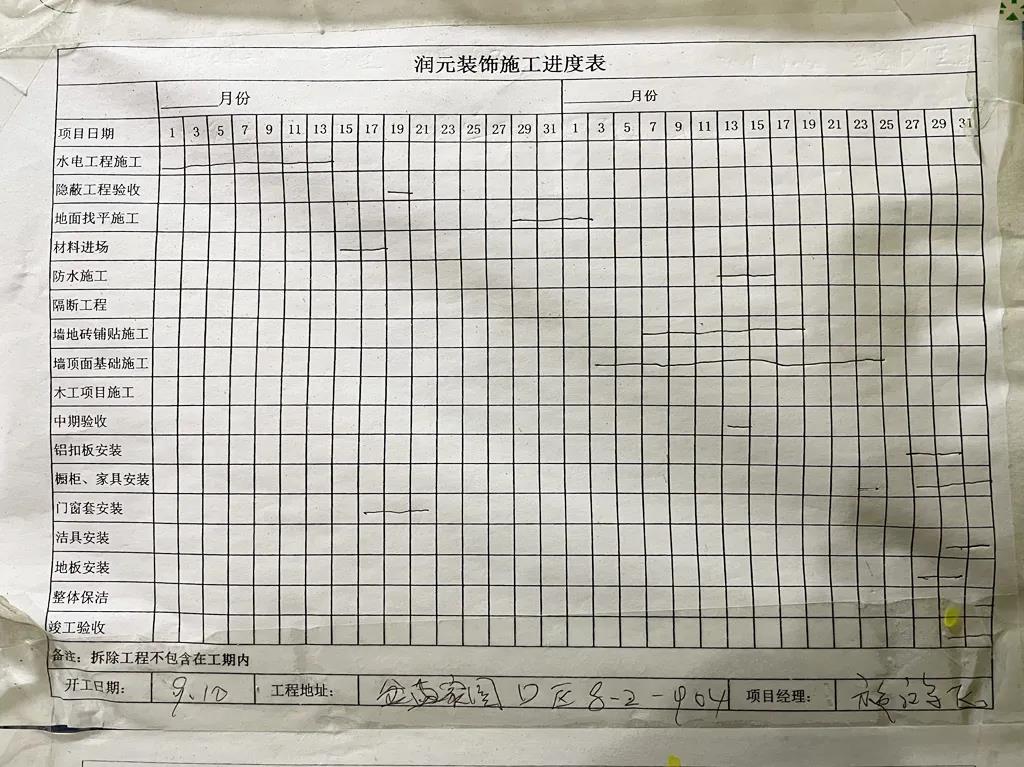 施工進(jìn)度表可以很清晰的看到工程計(jì)劃,方便工長(zhǎng)合理安排施工、業(yè)主對(duì)照施工。