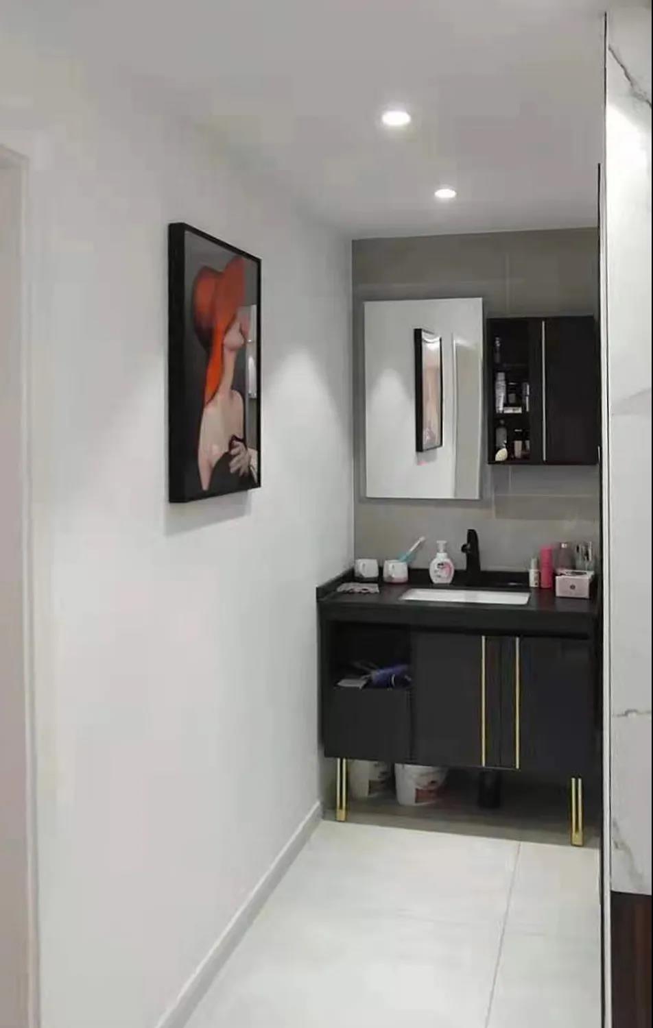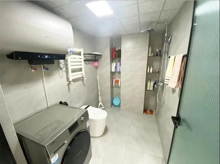 衛(wèi)生間——改造后的衛(wèi)生間,干區(qū)2平米,濕區(qū)4平米,利用封堵管道后的凹陷處進行壁龕收納處理,干區(qū)利用潤元的定制浴室柜量身打造,使用更加便捷、美觀。