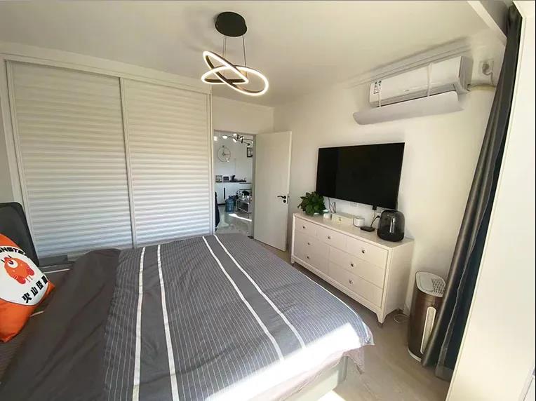 主臥面積11平米,還有一個4平米的陽臺,只擺放了一張雙人床和一組衣柜,陽臺則用來堆放雜物,焦女士希望未來主臥滿足居住和儲物功能外,還能打造一個休閑空間。