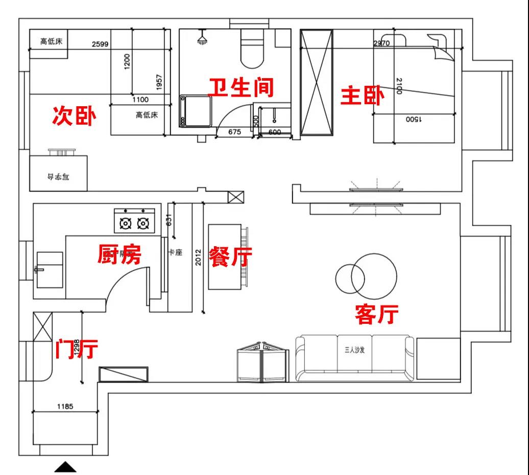 本期案例是我們的業(yè)主吳女士家的這套老房,房子面積80平米,使用面積54平米,是兩室一廳一廚一衛(wèi)的格局,要滿足三代四五口人的居住需求。