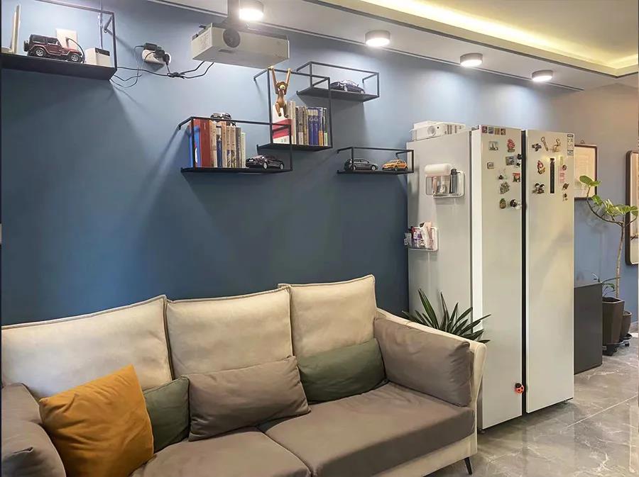 設(shè)計(jì)師將客廳20平米的空間,重新劃分了餐區(qū)和會客區(qū),將餐區(qū)墻體延長了30公分,化解了餐區(qū)正對衛(wèi)生間門的尷尬,墻面開窗后改善了客餐廳的采光和通風(fēng)。
