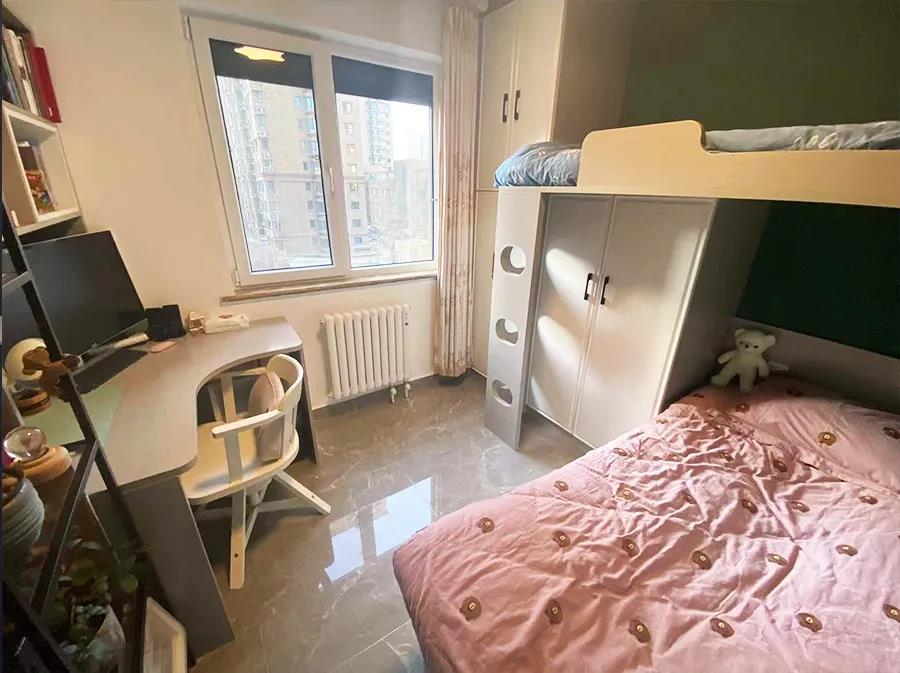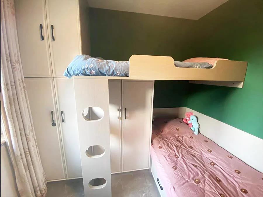 為了滿足老人寒暑假過來照顧小孩的居住需求,設(shè)計(jì)師為業(yè)主打造了錯(cuò)層兒童房,利用定制家具打造了高柜、矮柜以及書桌,滿足了業(yè)主居住,儲物及學(xué)習(xí)的需求。