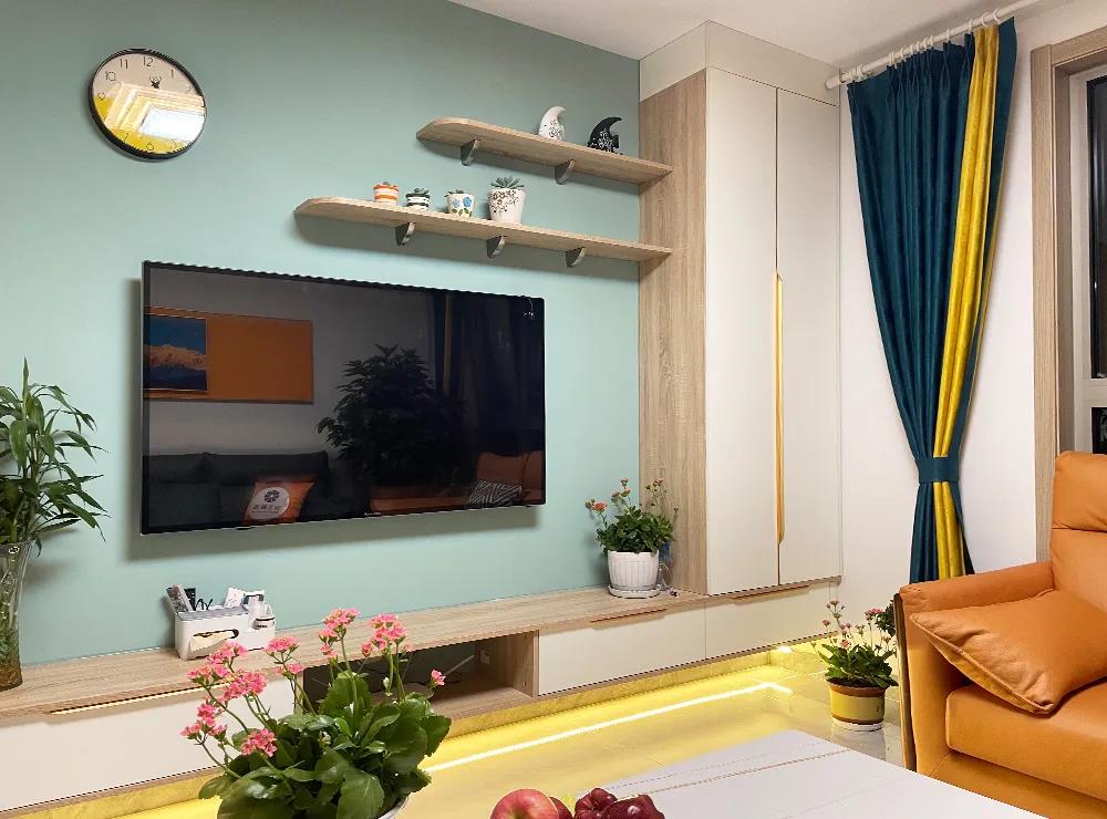 客廳空間22平米,為了增加客廳儲(chǔ)物,設(shè)計(jì)師利用潤(rùn)元定制家具,將電視柜與儲(chǔ)物柜結(jié)合起來(lái),還貼心的規(guī)劃了展示架,展示儲(chǔ)物都是可以的,同時(shí)也讓這個(gè)空間層次更豐富。