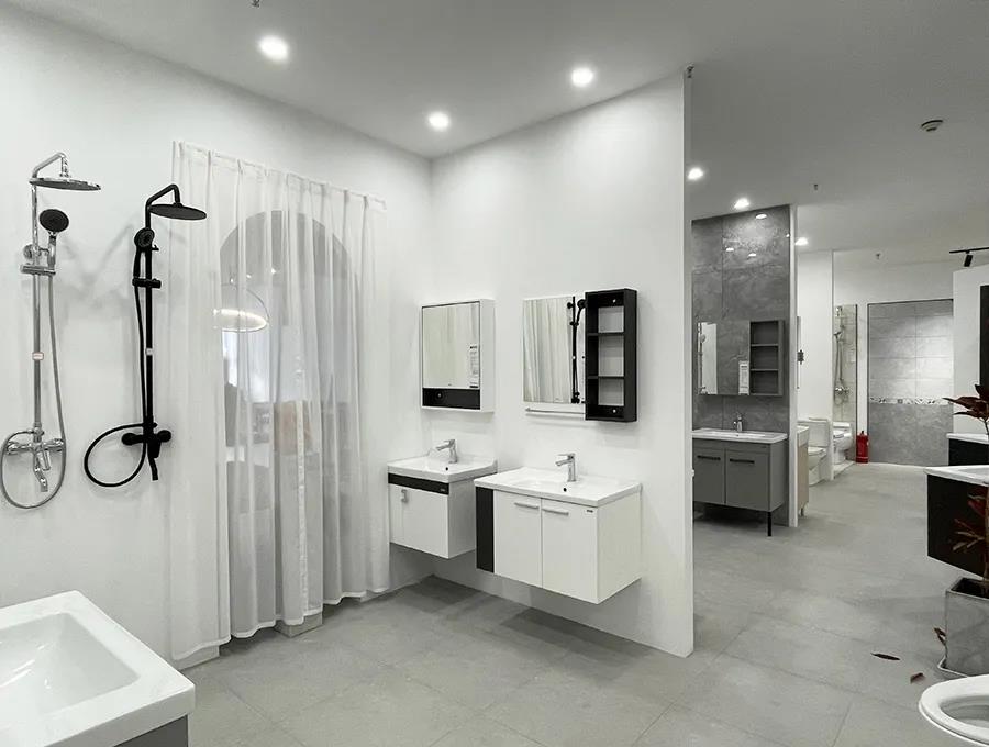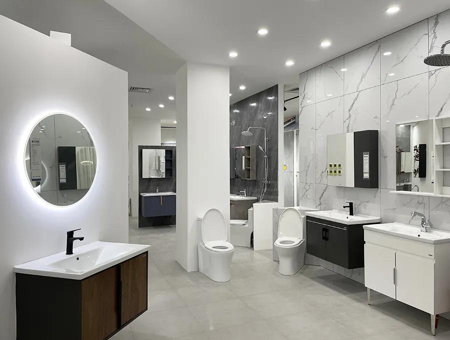 潔具區(qū)域也入駐了新的品牌,更多的款式,并且加3000元,可將衛(wèi)生間標(biāo)配的成品浴室柜升級成定制浴室柜。