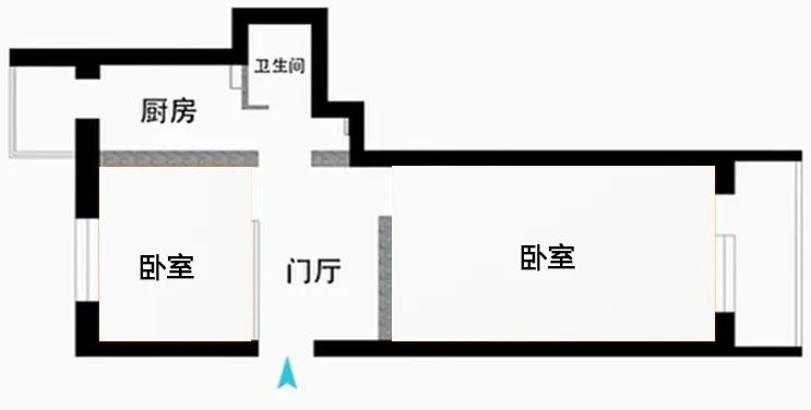 案例二:這套房子建筑面積55平米,是兩室一廳一廚一衛(wèi)的格局,未來要滿足三代四口人居住需求,同時還要開放式的大廚房,衛(wèi)生間也要干濕分離,還要給孩子留出活動學(xué)習(xí)的空間。
