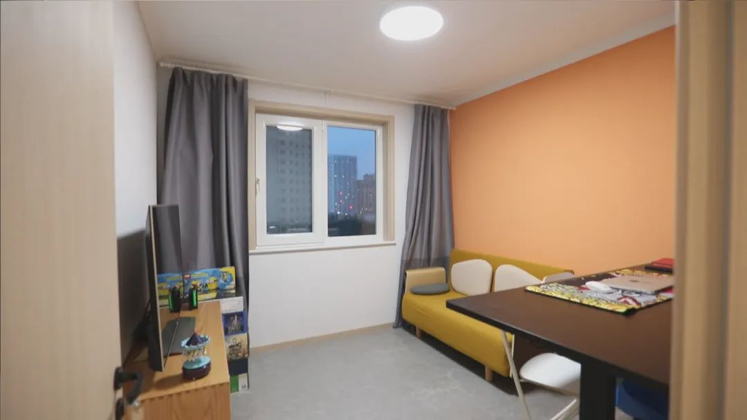 這間多功能房內(nèi),沙發(fā)床、辦公桌、電視的規(guī)劃布局,可滿足謝先生的辦公、看球賽、家人偶爾留宿的多重需求。