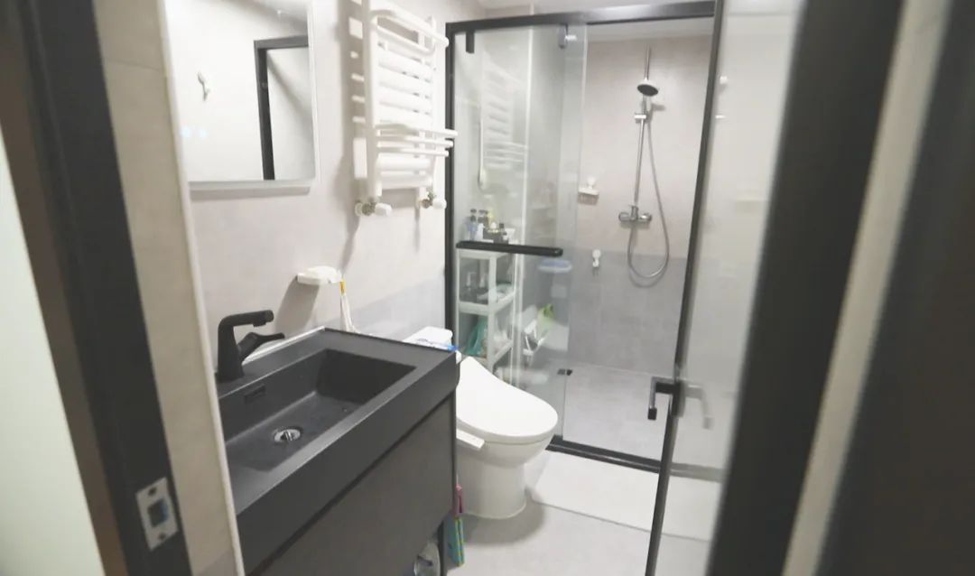 設(shè)計師根據(jù)使用的頻率和動線,對2個衛(wèi)生間進行了整體分區(qū),靠近客廳的這個衛(wèi)生間作為公共衛(wèi)生間,供一家人使用,主臥房間里的衛(wèi)生間則單獨提供給夫妻倆來使用。2個衛(wèi)生間都是合理規(guī)劃出了干區(qū)和濕區(qū),如廁、淋浴、洗漱功能齊全。