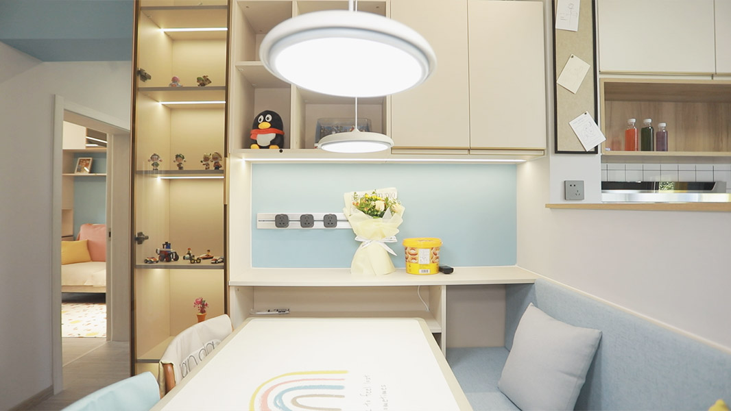 在這個(gè)活動(dòng)空間里,同樣利用潤元定制家具打造了吊柜及通頂儲(chǔ)物柜,來滿足收納以及展示的需求。