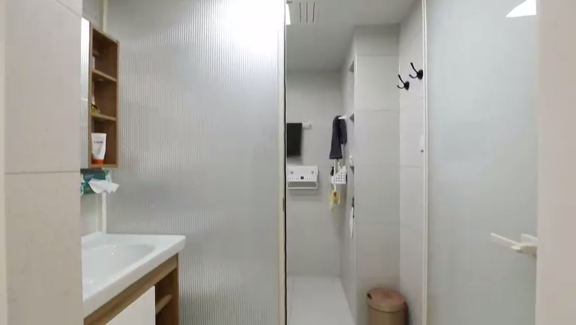 設(shè)計(jì)師在次衛(wèi)的馬桶與水盆之間,用長虹玻璃來隔斷,寬度只有2公分,節(jié)省空間的同時也實(shí)現(xiàn)了干濕分區(qū)。