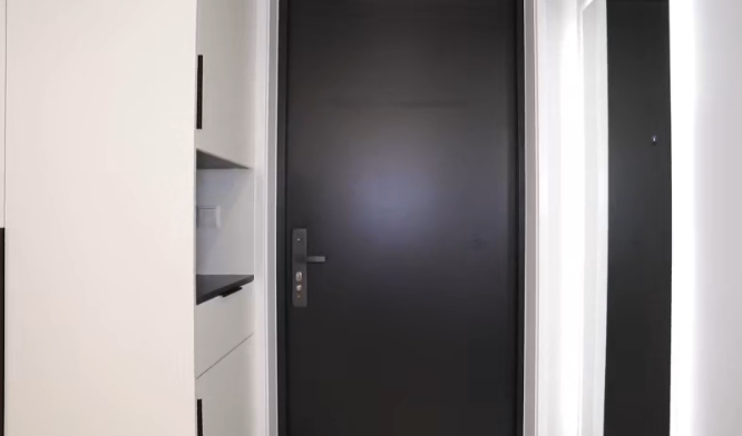 為了給蔡先生一個(gè)寬敞、明亮、舒適的居家環(huán)境,設(shè)計(jì)師拆除了所有的輕體墻,重新規(guī)劃,在門廳右手邊做了一組通頂?shù)囊旅毙?,智能穿衣鏡、換鞋凳,功能齊備。