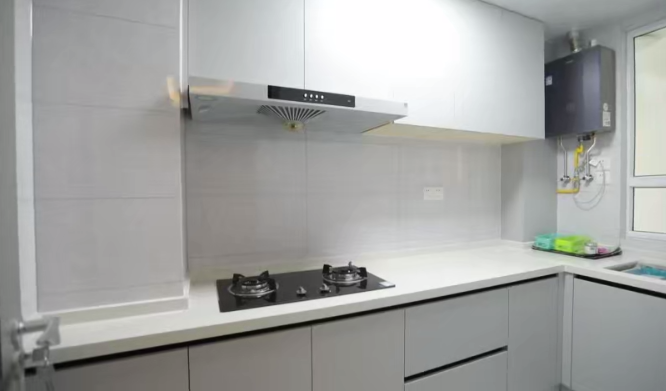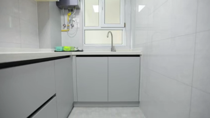 廚房空間設(shè)計(jì)師規(guī)劃了一組L型的櫥柜,為廚房提供了充足的儲(chǔ)物空間,同時(shí)洗、切、炒動(dòng)線合理,方便操作。