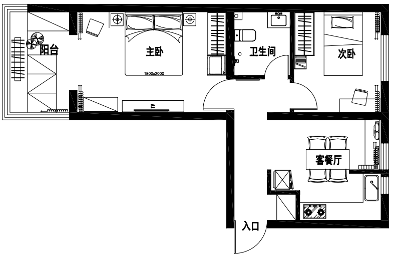 餐廚客一體化設(shè)計,實現(xiàn)了空間共享,但由于面積有限,餐桌承載了茶幾、就餐、廚房操作臺等多種功能,卡座沙發(fā)占空間小又能儲物,作為日常會客使用,各個功能都滿足了,空間得到了充分利用。