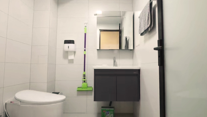 設(shè)計師將衛(wèi)生間門移動了80厘米,與入戶門錯開,衛(wèi)生間里面的布局也重新規(guī)劃,水盆、馬桶、淋浴區(qū),使用更加方便。