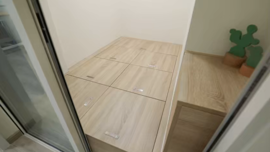 設(shè)計(jì)師將原來(lái)的儲(chǔ)物間規(guī)劃為了兒童房,面積由原來(lái)的1.3平米擴(kuò)大到2.7平米,利用定制地臺(tái)作為孩子休息區(qū),同時(shí)也增加了儲(chǔ)物空間。